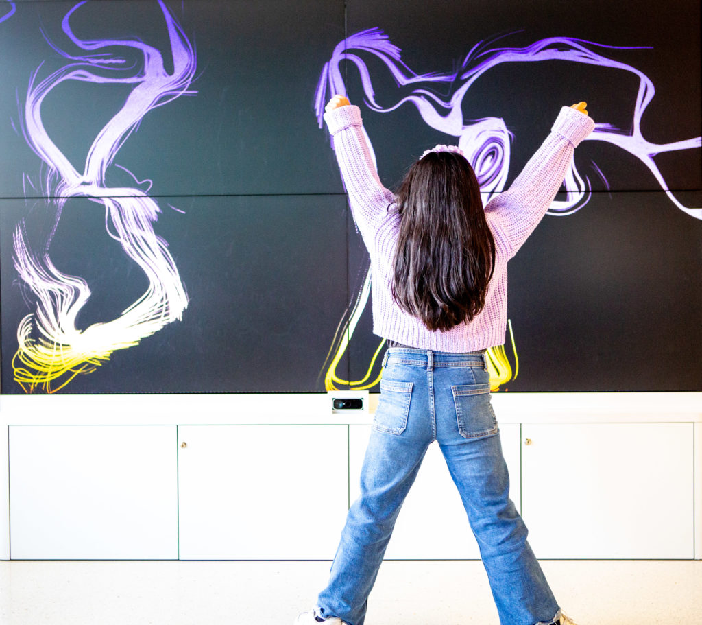 Working with digital artists to create interactive and inclusive works of art, which are then installed in children’s hospitals and institutions for children with disabilities. These digital installations offer an artistic experience by instantly sparking creativity, curiosity, and interaction.